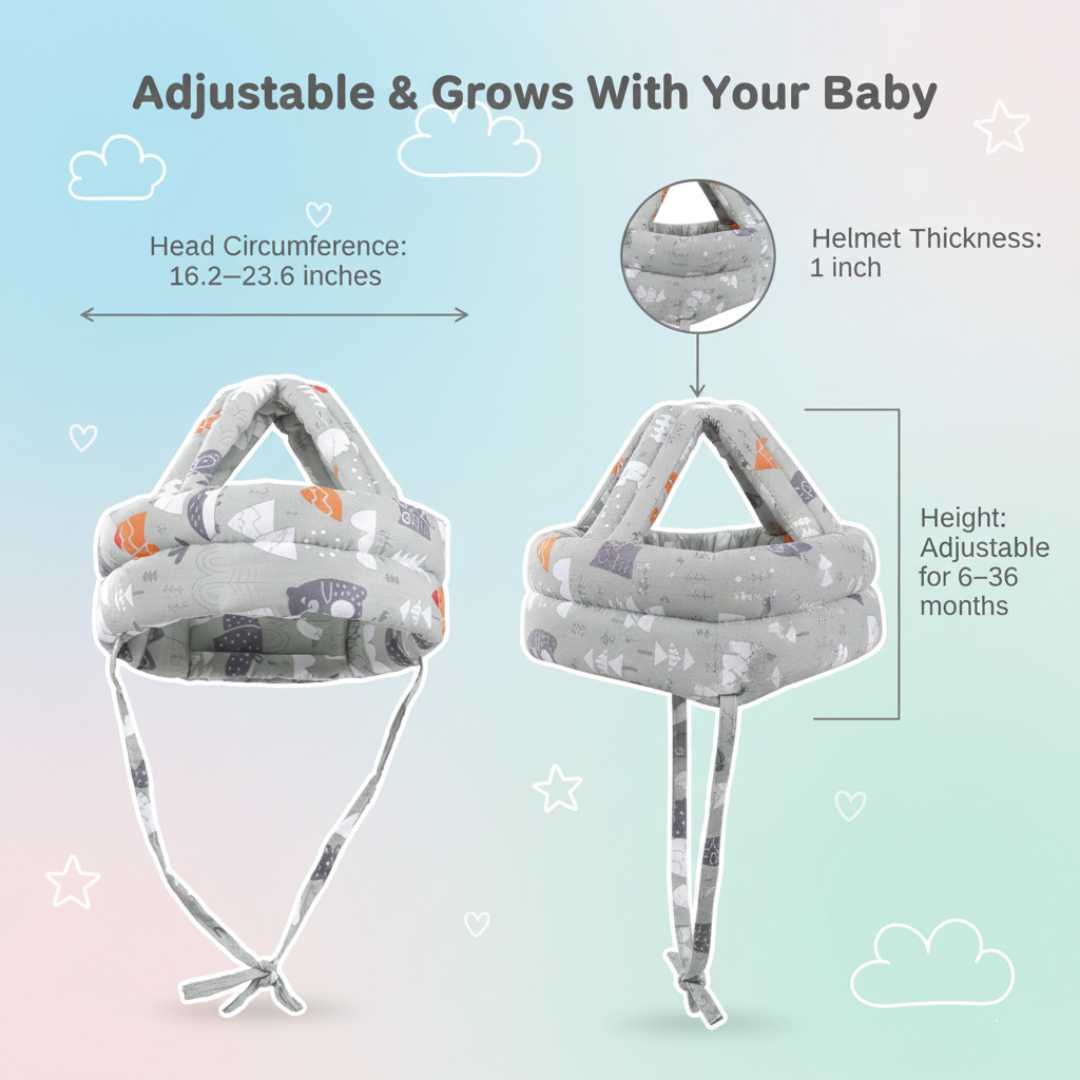 Soft, shock-absorbing padding with breathable, adjustable design. Provides 360° protection while keeping your baby safe, lightweight, and comfortable.