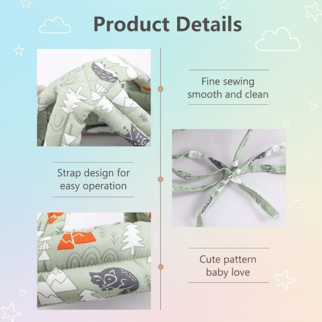 Soft, shock-absorbing padding protects your baby's head from bumps, falls, and sudden collisions — no more painful bruises.